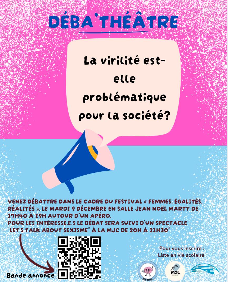 La soirée se poursuivra avec le spectacle « Let’s talk about sexism », proposé dans le cadre du festival de la MJC Femmes, Égalités, Réalités, de 20h à 21h30.